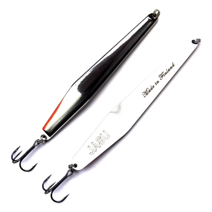 The new, Finnish-made Jasu Jalo spoons are produced in Satakunta. The coating and coloring of these lures utilizes new 3D technology. The shiny, raised surface of the lure will not crack even if it hits rocks and you can bend the body of the lure to adjust the swimming action without having to worry about the lacquer.
