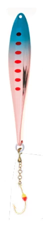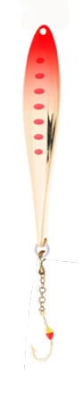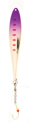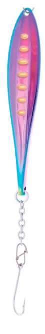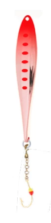 The Veka Juska vertical lure is an improved version of a basic jig. The horizontal stripes provide the jig with a slightly distinctive swimming action compared to traditional jigs. One side of the lure is grooved while the other is completely smooth. This amazing vertical lure is manufactured using gradient technology. Equipped with a 1 h chain color hook.