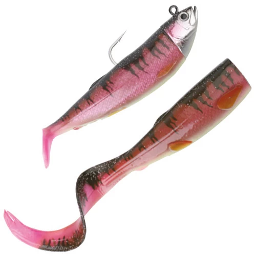 The package contains both the paddle tail and curl tail versions of the lure. The sickle-shaped curl tail is better for slow fishing and the paddle tail is more suited for faster, more active fishing.