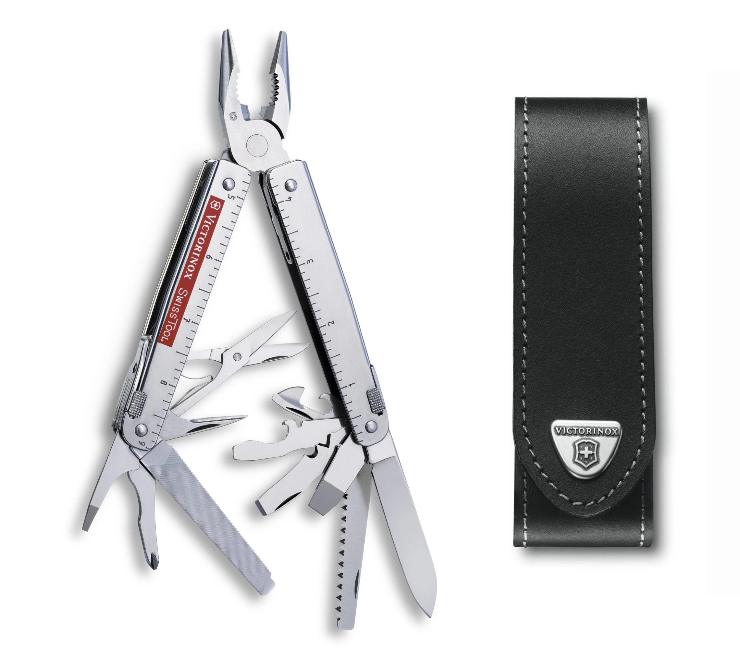 Victorinox SwissTool X is a robust multitool for professional use. All tools included in SwissTool are lockable for safe use. The tools extend from the sides without the user having to open the pliers. Closed length 115 mm. The tool comes with a leather case.